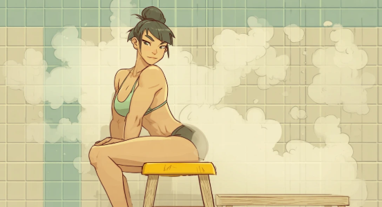 「風呂場、椅子、独り占め」